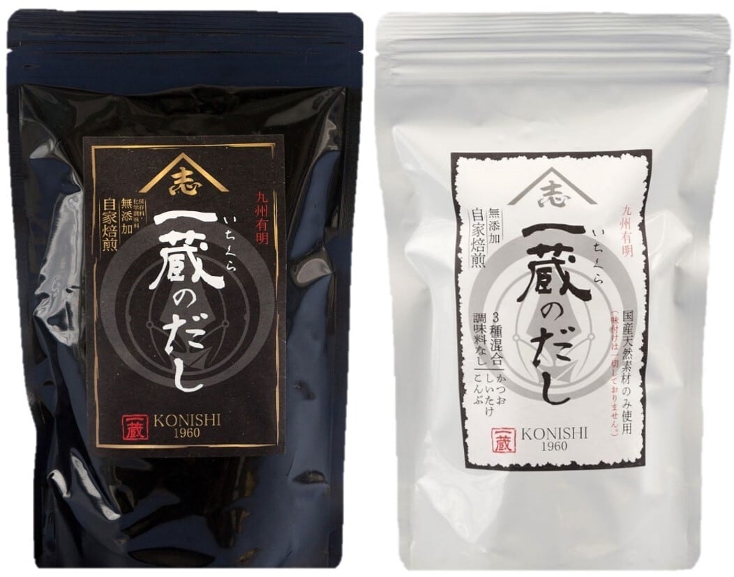一蔵のだし(黒):うま味を引き立たせるため相性の良い7種の材料を弊社オリジナルの黄金比率でブレンドしました。